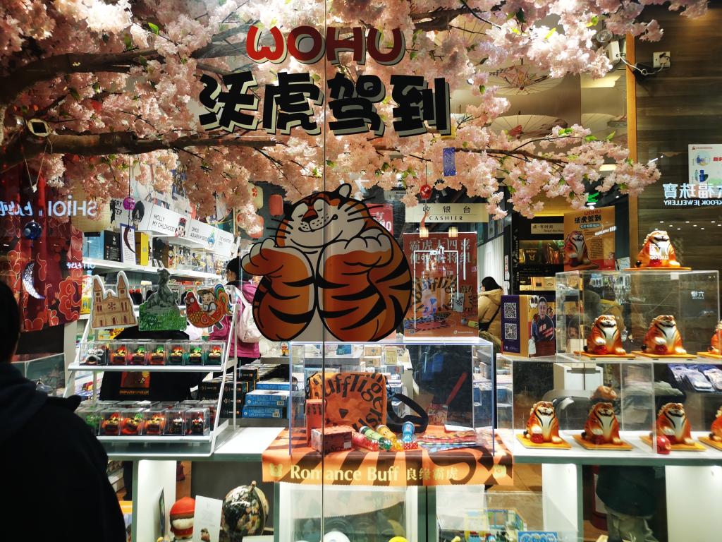 深受年輕人喜歡的國潮、文創(chuàng)、盲盒等產(chǎn)品也紛紛蹭起虎年熱度。在廣州聯(lián)合書店的文創(chuàng)區(qū),藝術(shù)家將老虎形象融入原創(chuàng)IP設(shè)計(jì),便攜麻將、解壓神器、虎頭擺件等占據(jù)櫥窗C位。廣州市民高小姐拿著一個虎頭挎包愛不釋手,她表示,春節(jié)期間很愿意買一些跟生肖有關(guān)的產(chǎn)品,“現(xiàn)在的生肖產(chǎn)品都既有設(shè)計(jì)又有創(chuàng)意,很貼合青年人喜歡的點(diǎn),所以看到喜歡的都愿意去買?!?/p>