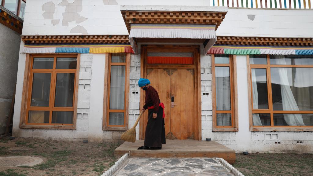 不久前剛下過一場(chǎng)雨,青藏高原上的俄合拉村綠意更深。27歲的馬強(qiáng)強(qiáng)準(zhǔn)備咖啡豆、打掃桌椅,為即將到來的旅游旺季作準(zhǔn)備。