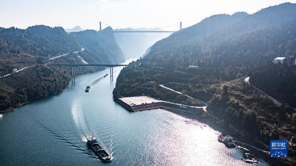 近年來,構(gòu)皮灘、思林、沙沱電站大型升船機(jī)相繼投入運(yùn)行,烏江水道全面貫通。2021年11月,貴陽港開陽港區(qū)北上長江首航,14艘貨船運(yùn)載6800噸磷礦,從貴陽港開陽港區(qū)出發(fā),前往重慶涪陵。這標(biāo)志著烏江“黃金水道”全線大規(guī)模復(fù)航,500噸級船舶可直達(dá)長江。