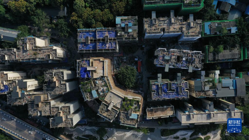 這是重慶市北碚區(qū)新房子片區(qū)老舊小區(qū)改造項(xiàng)目施工現(xiàn)場(chǎng)(2021年10月23日攝,無(wú)人機(jī)照片)。新華社發(fā)(秦廷富攝)