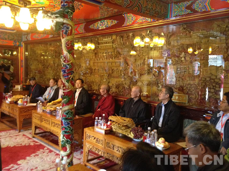 圖為2014年考察期間,專家學者們與塔爾寺寺管會領(lǐng)導交流