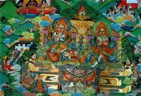 在后弘期初期的一個世紀中,衛(wèi)藏十人和他們的弟子在前后藏各地建立了許多增團和寺廟,成為西藏佛教的主流,遺留至今的康瑪縣的艾旺寺和江浦寺(薩瑪達寺)、夏魯堅貢寺、扎囊寺的宗教藝術,反映了漢地和河西隴右地區(qū)的藝術對西藏的影響,成為西藏佛教藝術中的精品。古格王朝還在1042年迎請印度高僧阿底峽(孟加拉國人)入藏傳法。1045年阿底峽又被前藏各地區(qū)的佛教人士的代表仲敦巴(100—1064)迎請到前藏地區(qū)傳送,1054年阿底峽在聶塘地方去世后,由仲敦巴統(tǒng)領眾弟子,在1056年在拉薩北面興建了熱振寺,由此逐漸發(fā)展出噶當派。在這個時期有一個修習佛法的在家僧人素爾波且(100—1062)建立鄔巴隆寺,整理吐蕃王朝時代翻譯的經(jīng)典,以此為中心發(fā)展出寧瑪派。1073年款氏家族的官卻杰波建薩迦守,發(fā)展出薩迦派。山南洛扎縣的瑪爾巴譯師曾多次到印度學習佛法和梵文,他的一個弟子米拉日巴以修行和傳法著名。米拉日巴的弟子塔波拉杰1121年建塔波寺,同年穹波南交建香巴寺,由此發(fā)展出塔波噶舉和香巴噶舉派。塔波噶舉中塔波拉杰的弟子都松欽巴1147年建昌都噶瑪寺,1187年建楚布寺,發(fā)展出噶瑪噶舉派;帕木竹巴1185年建丹薩替寺,發(fā)展出帕竹噶舉派;達瑪旺秋1160年建拔絨寺,發(fā)展出拔絨噶舉派;尚蔡巴1175年建蔡巴寺,發(fā)展出蔡巴噶舉派。這四個派別被稱為塔波噶舉的四大支。帕竹噶舉派中,帕木竹巴的弟子止貢巴仁欽貝1179年建上貢寺,發(fā)展出止貢噶舉派;達隆塘巴扎西貝1180年建達隆寺,由此發(fā)展出達隆噶舉派;林熱白瑪多吉(其弟子藏巴嘉熱1193年后建“主”寺和熱垅寺)傳出主巴噶舉派;格丹意希僧格(其弟子卻悶朗1206年建雅桑寺)傳出雅桑噶舉派;杰擦和衰丹兄弟建綽浦寺,發(fā)展出綽浦噶舉派;楚臣僧格1181年建修賽寺,發(fā)展出修賽噶舉派;意希孜巴建葉巴寺,發(fā)展出葉巴噶舉派;喜饒僧格傳出瑪倉噶舉派。這八個派別被稱為塔波噶舉的八小支。實際上各地方勢力和佛教寺院相結合,因此形成不同的教派,這是前弘期所沒有的。2、一些寺院擁有土地屬民,古格王朝把幾個谿卡送給仁欽桑布,這是有關寺屬莊園的最早的記載。薩迦派家族的莊園屬民和寺院結合在一起。這是政教會一的基礎。3、從吐蕃王朝時佛教強調對佛祖的崇拜演變?yōu)閺娬{對本派祖師的崇拜,強調師傳,強調視師為佛,而仲敦巴、米拉日巴、薩欽貢噶寧波等西藏的祖師的出現(xiàn),使佛教進一步本土化。