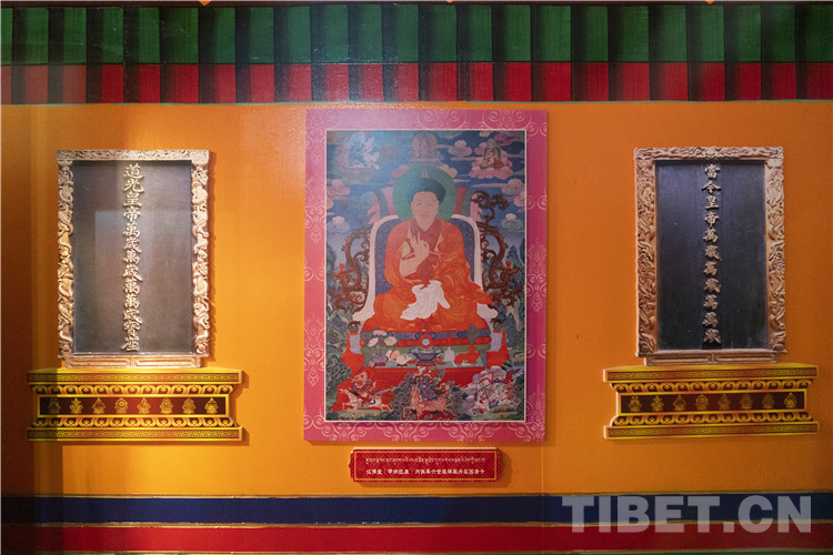 康熙皇帝照封五世達(dá)賴之例,冊(cè)封五世班禪·羅桑益西為“班禪額爾德尼”,并賜金冊(cè)金印,從此班禪世系稱為班禪額爾德尼,成為藏傳佛教格魯派第二大活佛轉(zhuǎn)世系統(tǒng)。五世班禪額爾德尼的金冊(cè)金印、乾隆皇帝欽命宮廷畫(huà)家繪制的六世班禪額爾德尼·羅桑巴丹益希畫(huà)像、七世班禪額爾德尼·丹貝尼瑪在擊退廓爾喀入侵后所立的《皇圖鞏固》青石碑……一件件文物、一幅幅照片,生動(dòng)講述著歷代班禪及扎什倫布寺和中央政府的密切聯(lián)系與往來(lái),講述著歷代班禪和扎什倫布寺在維護(hù)國(guó)家主權(quán)與領(lǐng)土完整以及促進(jìn)西藏社會(huì)發(fā)展方面所起的重要作用。