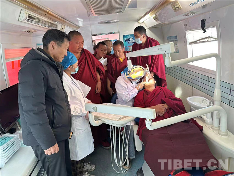 圖為扎什倫布寺僧人開(kāi)展口腔檢查 圖由扎什倫布寺提供