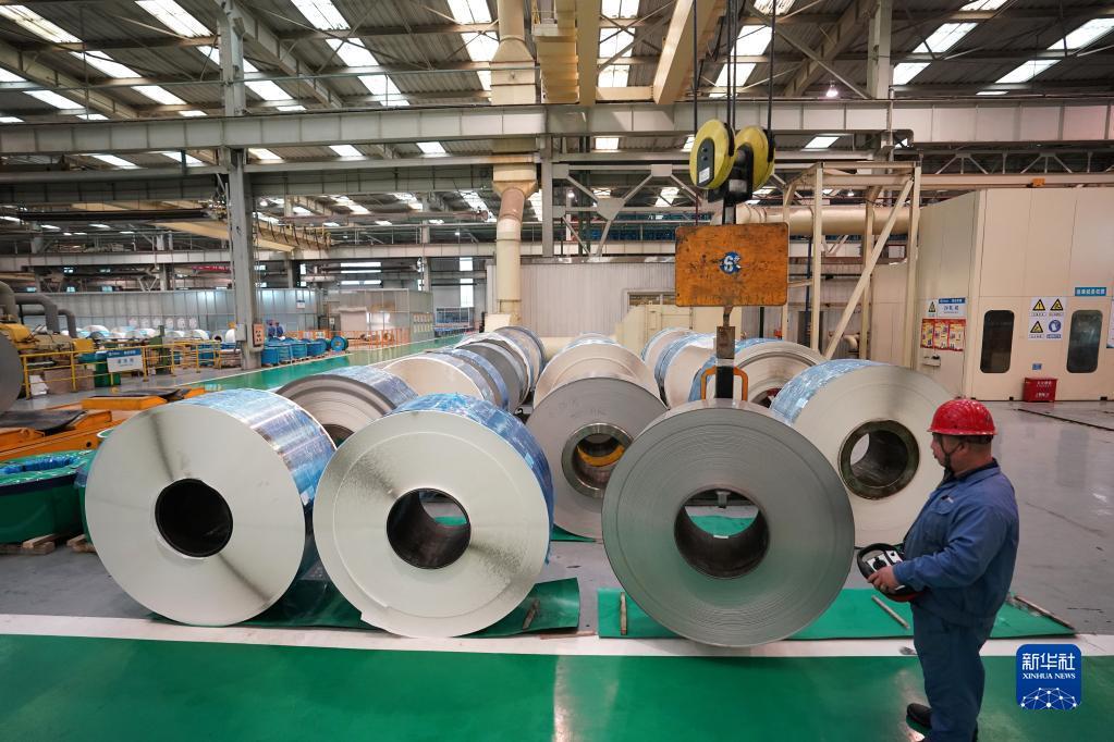 山西太原,中國寶武山西太鋼不銹鋼精密帶鋼有限公司車間,生產(chǎn)線上機(jī)器轟鳴,一卷卷薄如蟬翼、光滑如鏡的鋼材經(jīng)過壓延、清洗、包裝等步驟自動(dòng)化制成。