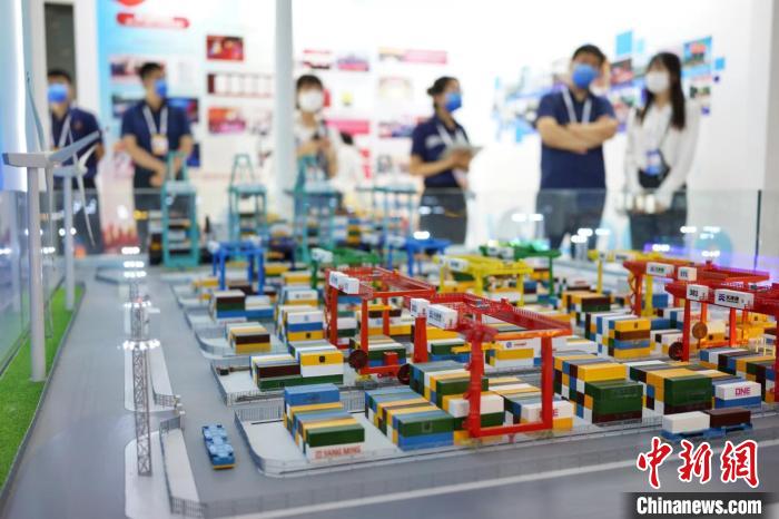 在天津港集團展位,“全球首個智慧零碳碼頭沙盤”極具科技感,吸引參觀者駐足。 佟郁 攝