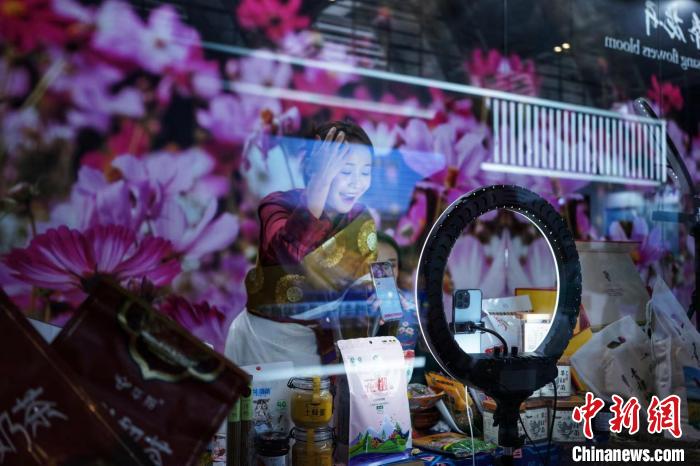 來自甘南州的主播在展位上進行短視頻直播帶動家鄉(xiāng)特產(chǎn)銷售,幫助更多鄉(xiāng)親致富增收。 佟郁 攝