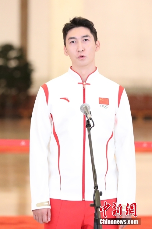 10月16日,中國共產(chǎn)黨第二十次全國代表大會在北京人民大會堂開幕。大會開幕前,舉行“黨代表通道”采訪活動。圖為武大靖代表接受采訪。 中新社記者 蔣啟明 攝
