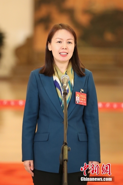 10月16日,中國共產(chǎn)黨第二十次全國代表大會在北京人民大會堂開幕。大會開幕前,舉行“黨代表通道”采訪活動。圖為祖力亞提·司馬義代表接受采訪。 中新社記者 蔣啟明 攝