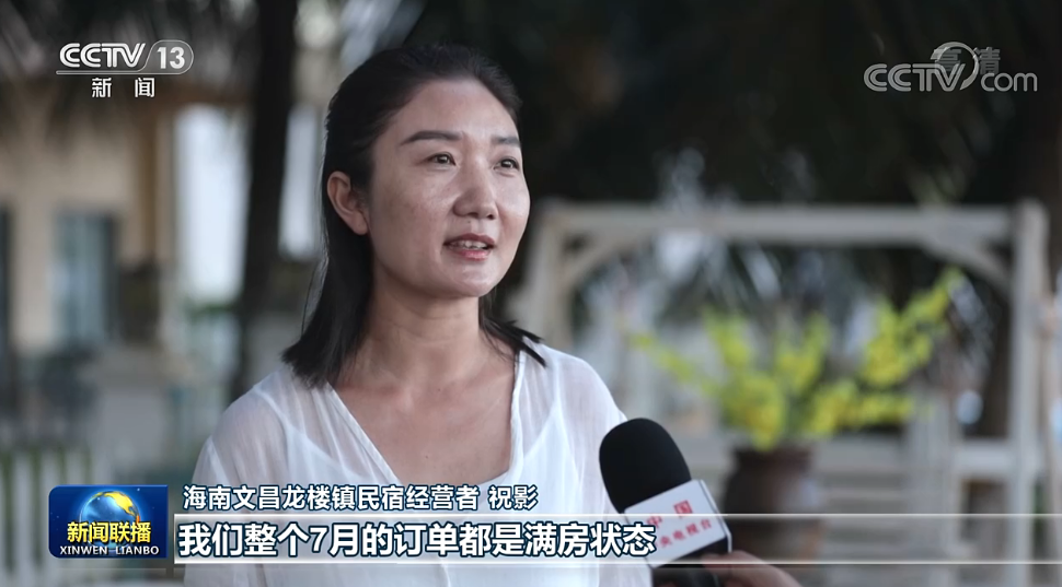 海南文昌龍樓鎮(zhèn)民宿經(jīng)營(yíng)者 祝影:(龍樓鎮(zhèn))面貌徹底改變了,成為遠(yuǎn)近聞名的美麗鄉(xiāng)村。因?yàn)樽罱钟谢鸺l(fā)射,我們這里一直到7月底都是滿房的。