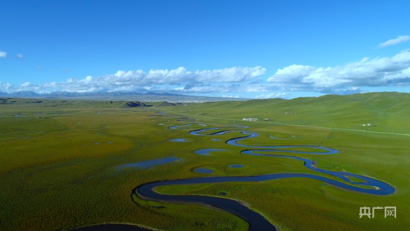 在青海,草原和河流是常見的景觀,發(fā)源于雪山的河流畫出的蜿蜒曲線,從高空看,河流和濕地交織在一起,形成了一幅大地抽象畫。位于澤庫縣的澤曲濕地便是如此。