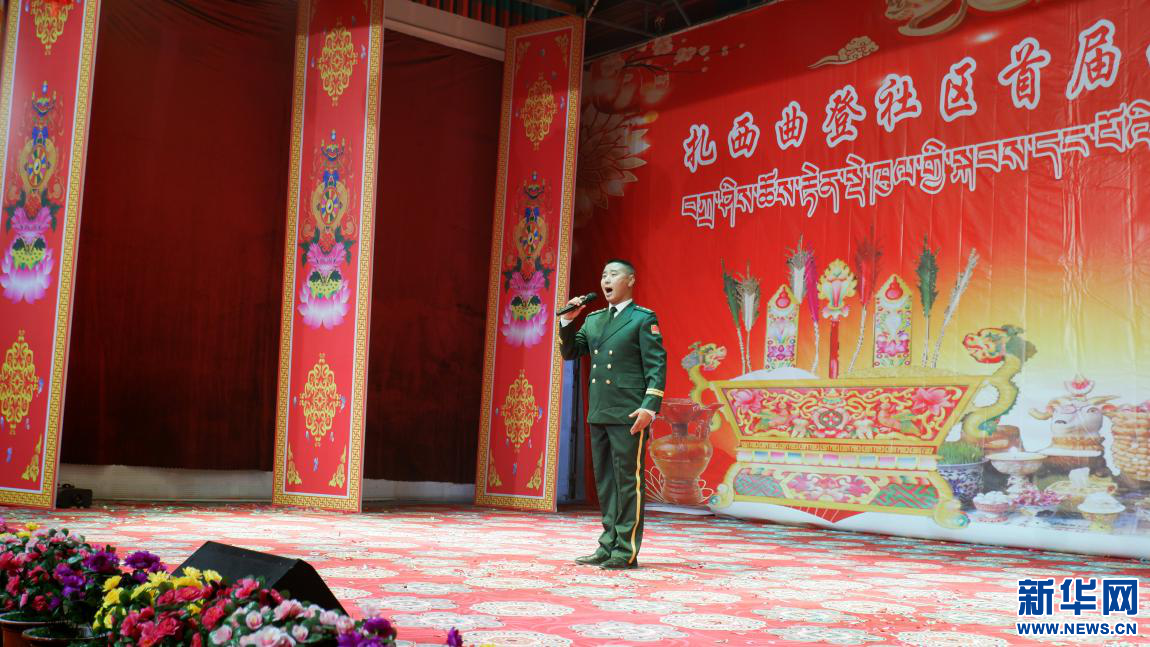 扎西曲登社區(qū)首屆藏歷新年晚會上的個人獨(dú)唱節(jié)目《陽光路上》(2月26日攝)。新華網(wǎng) 殷小燕 攝