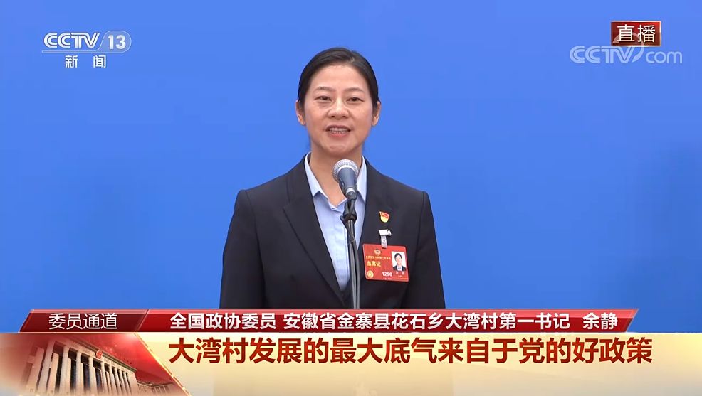 在全國政協(xié)十四屆一次會議第三場“委員通道”上,全國政協(xié)委員、安徽省金寨縣大灣村黨總支第一書記余靜談起在大灣村工作的8年,體會最深的是農(nóng)村發(fā)展最大的底氣,來自于黨的好政策。 圖自央視直播截圖