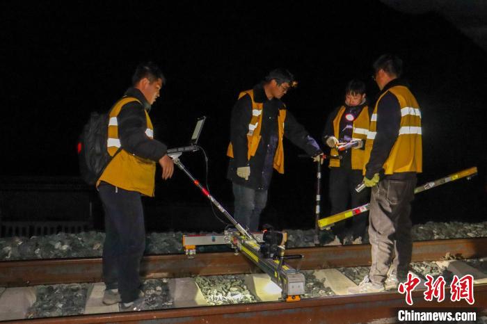 圖為2月9日晚,西藏拉林鐵路設(shè)備檢查作業(yè)現(xiàn)場?!●R生明 攝