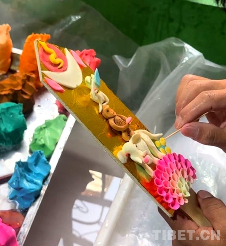 圖為旦增正在捏制酥油花攝影:次旦拉姆