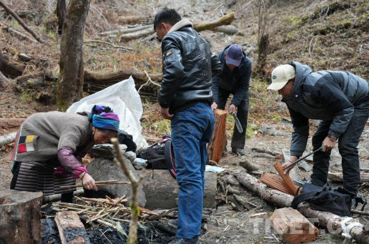 過了兩個小時,我們到達(dá)了平時巡邊人休息的地方。有人撿柴火、有人去接水,每個人都分工明確。扎西江村的背包里帶著方便面、優(yōu)樂美奶茶、可樂等,巡邊的每位隊員都拿出了自己包里的食物與大家分享。大家圍坐一起有說有笑,完全忘記了一路的艱辛與疲憊。