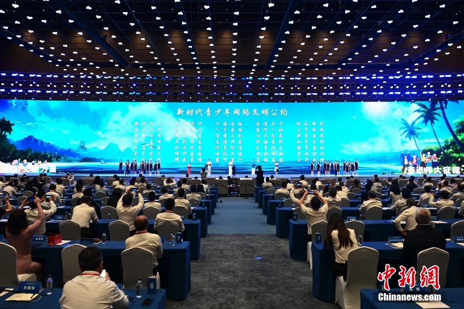 7月18日,2023年中國網(wǎng)絡文明大會在福建省廈門市舉行。本次大會以“網(wǎng)聚文明力量 奮進偉大征程”為主題,由中央網(wǎng)信辦、中央文明辦、中共福建省委、福建省人民政府共同主辦。圖為《新時代青少年網(wǎng)絡文明公約》發(fā)布現(xiàn)場。田雨昊 攝