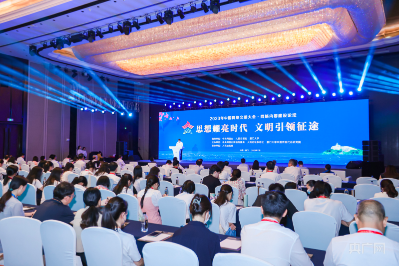 7月18日,2023年中國網(wǎng)絡(luò)文明大會(huì)網(wǎng)絡(luò)內(nèi)容建設(shè)論壇在福建省廈門市舉行。本次論壇以“思想耀亮?xí)r代 文明引領(lǐng)征途”為主題,旨在強(qiáng)化網(wǎng)絡(luò)空間思想引領(lǐng),守正創(chuàng)新做好黨的創(chuàng)新理論網(wǎng)上傳播,扎實(shí)推進(jìn)網(wǎng)絡(luò)文明建設(shè)。世界互聯(lián)網(wǎng)大會(huì)秘書長、中國網(wǎng)絡(luò)社會(huì)組織聯(lián)合會(huì)會(huì)長任賢良,人民日?qǐng)?bào)社副總編輯徐立京,新華社副社長劉健,福建省政府副省長、黨組成員,福建省公安廳黨委書記、廳長李建成,廈門大學(xué)黨委書記張榮出席論壇并致辭。