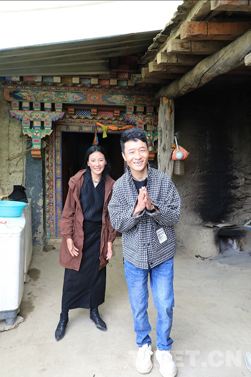 圖為索朗白巴和扎西巴姆在家門(mén)口迎接我們