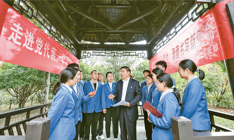 圖為2022年11月21日,黨的二十大代表在江蘇淮安與大學(xué)生分享黨的二十大報告學(xué)習(xí)感悟。 人民圖片 趙啟瑞/攝