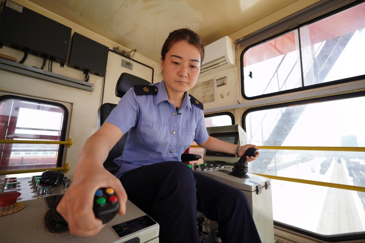 龍門吊司機(jī)袁佳靜正是這些鐵路工作者中的一員。她所操作的龍門吊,是一臺高達(dá)十?dāng)?shù)米的龐然大物。而她則是西安國際港站所有的龍門吊司機(jī)中的第一位女性。