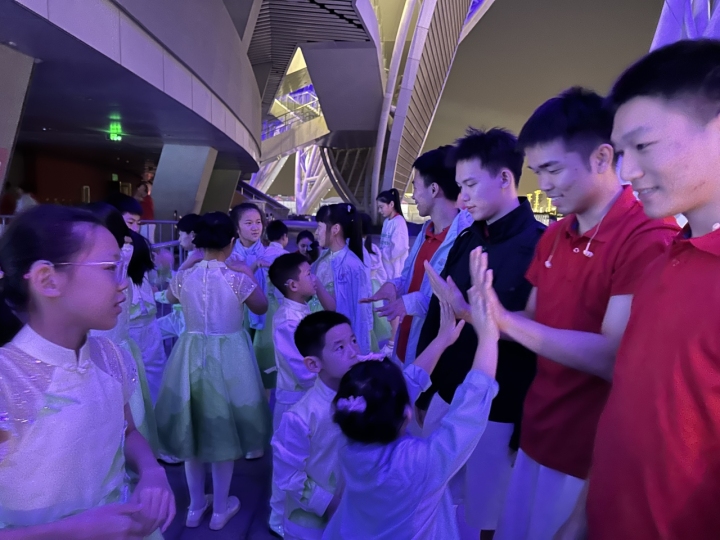 讓她欣喜的是,從臺(tái)州來到杭州后,參與開幕式聯(lián)排的孩子們表現(xiàn)都非常出色,他們保持著孩童最天真質(zhì)樸的狀態(tài),會(huì)熱情地和其他演職人員打招呼,會(huì)主動(dòng)教他人手語,也和同臺(tái)演唱的其他孩子建立了深厚的友誼。