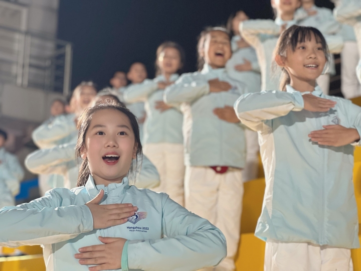 亞殘運(yùn)會(huì)開幕式上的這曲童聲有感動(dòng)到你嗎?它來自39名聽障兒童和100名杭州小伢兒