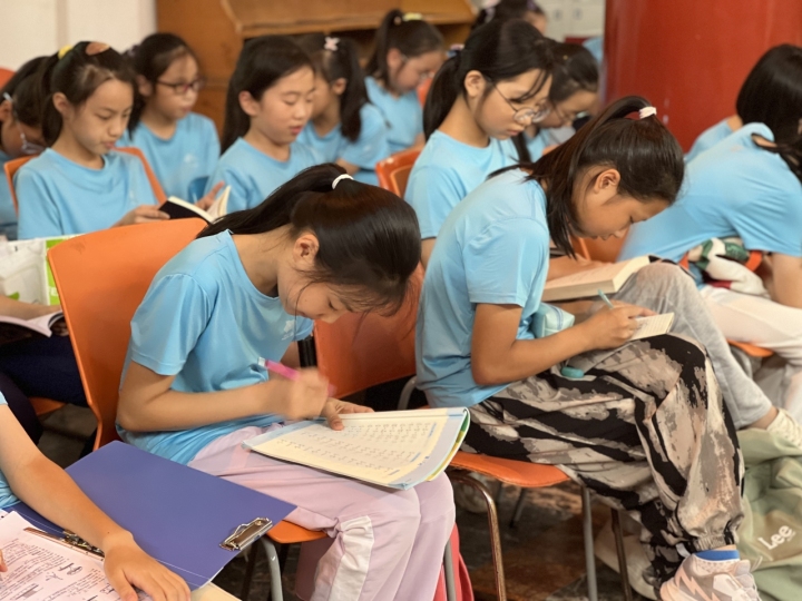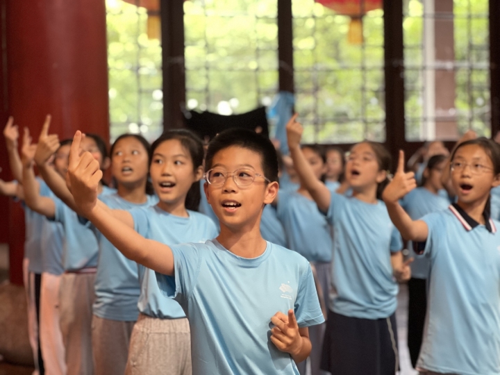 “基本是小學(xué)三年級(jí)以上的孩子們,身高在一米到一米三之間?!鄙铣菂^(qū)青少年活動(dòng)中心藝術(shù)教師吳雁告訴潮新聞?dòng)浾?,孩子們基本都有演唱基礎(chǔ),所以對(duì)他們來說,完成合唱最難的是學(xué)習(xí)手語動(dòng)作,并且還得做得整齊,做得漂亮。