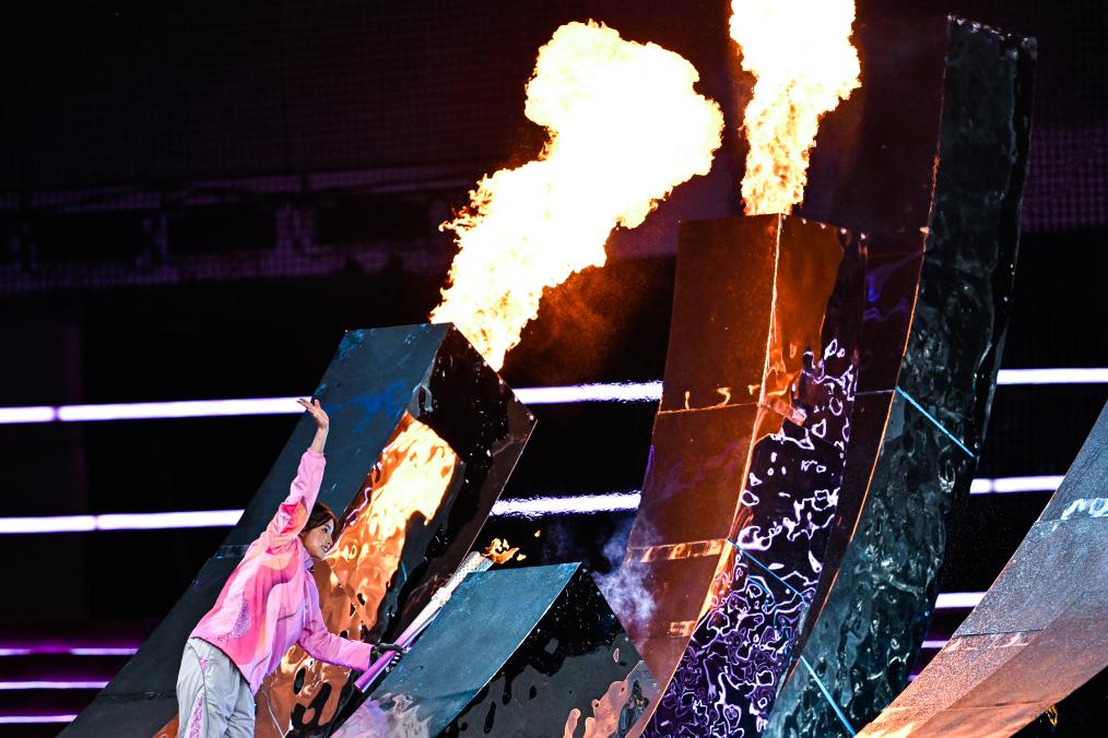 10月22日,最后一棒火炬手徐佳玲在開幕式上點燃主火炬。新華社記者伍志尊攝