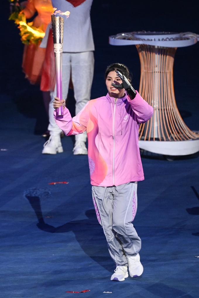 10月22日,最后一棒火炬手徐佳玲在開幕式上。新華社記者黃宗治攝