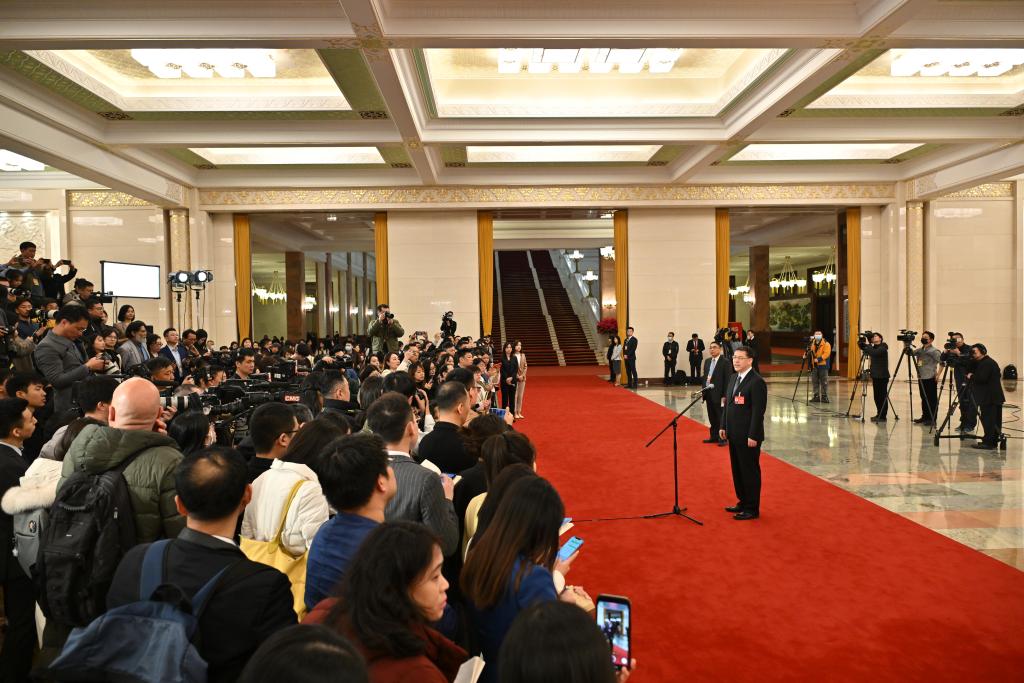 2024年3月5日上午(大會開幕會結(jié)束后),在人民大會堂北大廳舉行十四屆全國人大二次會議首場“部長通道”集中采訪活動,邀請部分列席會議的國務(wù)院有關(guān)部委主要負責人接受采訪。