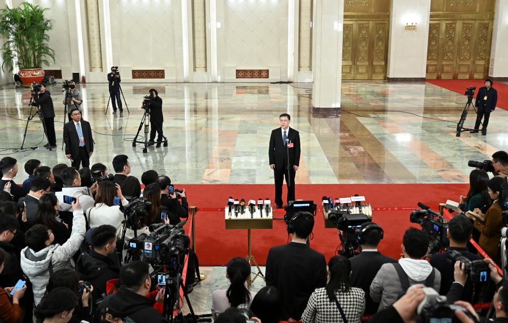 3月5日,第十四屆全國人民代表大會第二次會議首場“部長通道”集中采訪活動在北京人民大會堂舉行。新華社記者 李鑫 攝