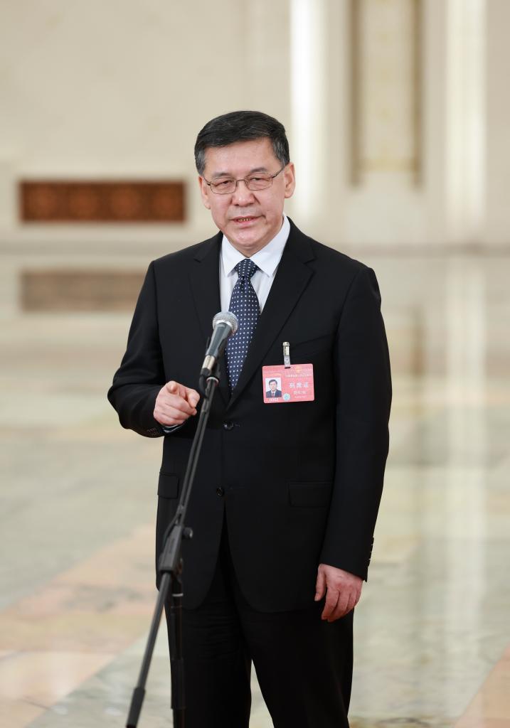 3月5日,第十四屆全國人民代表大會第二次會議首場“部長通道”集中采訪活動在北京人民大會堂舉行。這是水利部部長李國英接受媒體采訪。新華社記者 劉續(xù) 攝