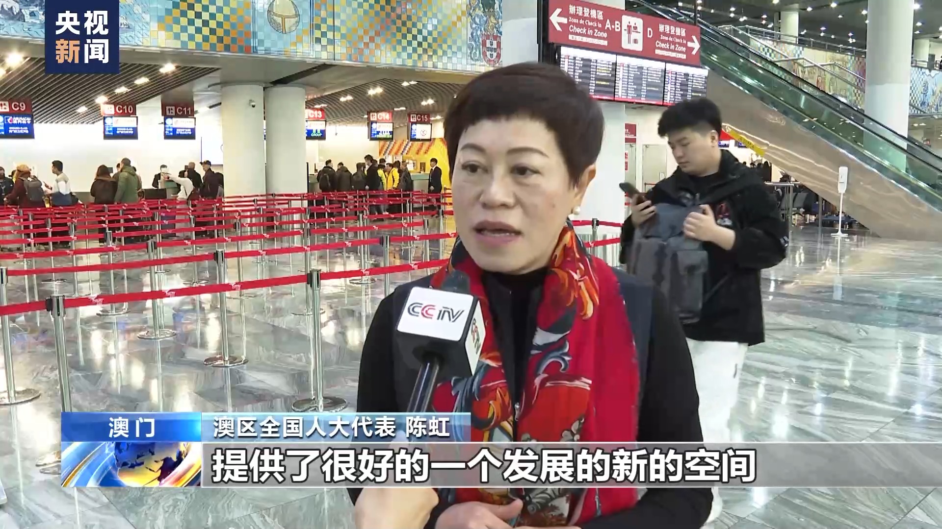 澳區(qū)全國人大代表 陳虹:國家給了澳門很好的發(fā)展的機遇跟平臺,提供了很好的一個發(fā)展的新的空間,特別是深合區(qū),粵港澳大灣區(qū),為澳門居民更好地融入國家發(fā)展大局提供了這么好的空間。