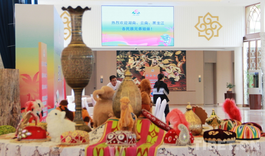 圖為新疆代表團(tuán)在駐地海南三亞新疆大廈精心準(zhǔn)備聯(lián)誼活動(dòng) 攝影:劉莉