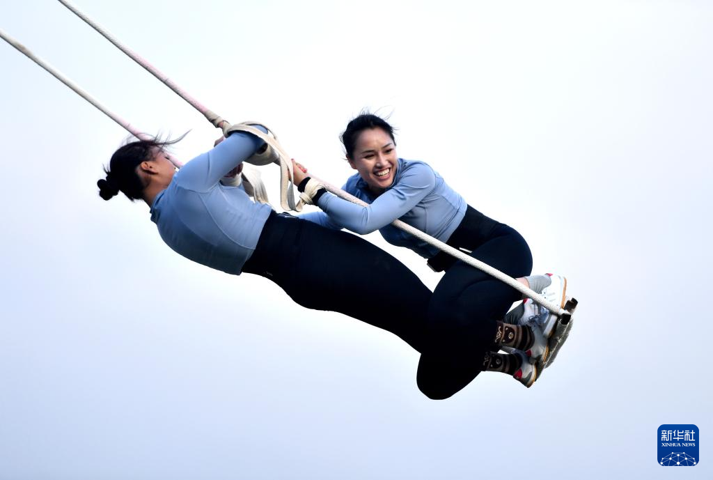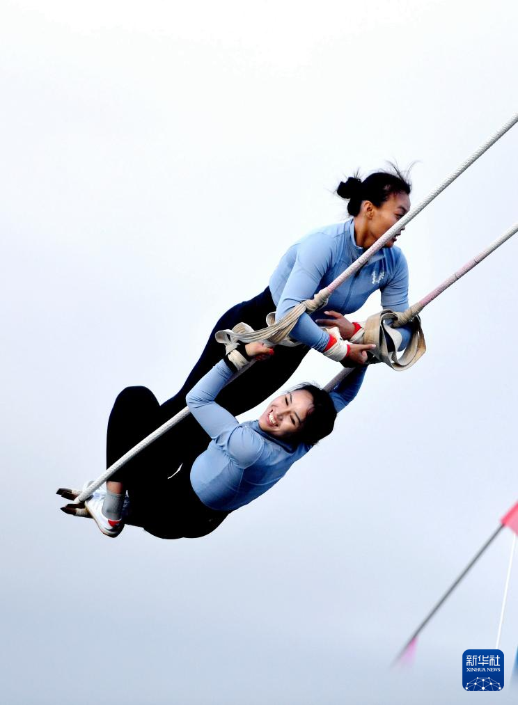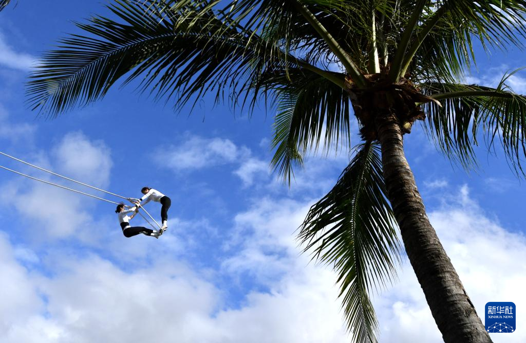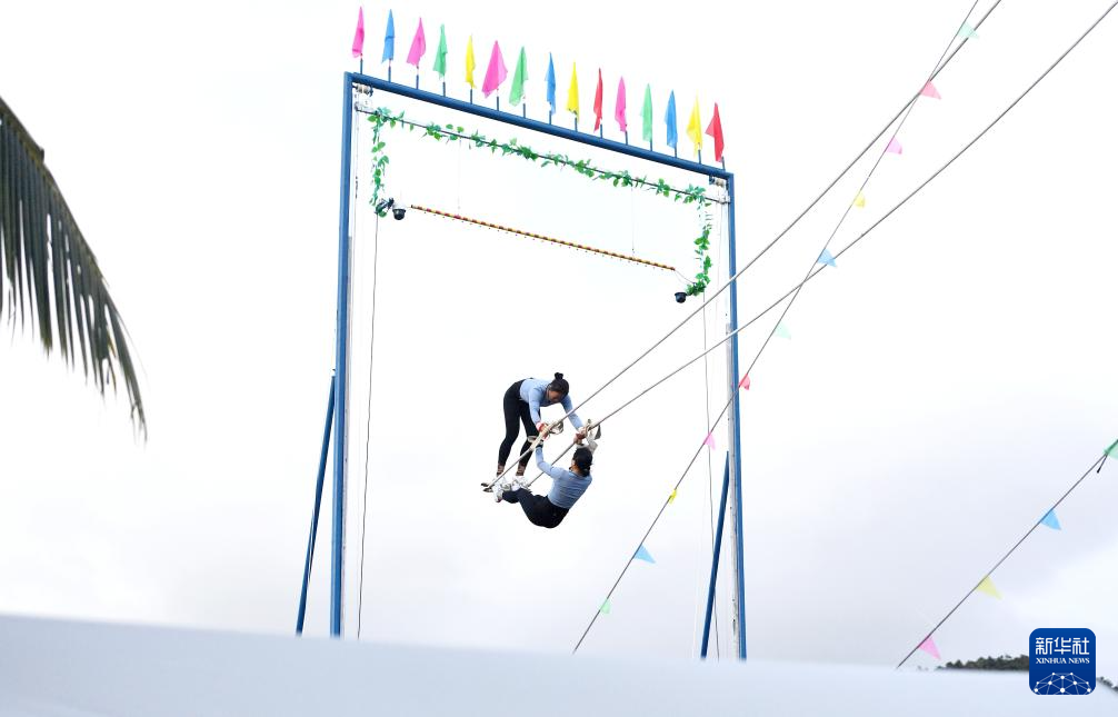 當(dāng)日,第十二屆全國少數(shù)民族傳統(tǒng)體育運(yùn)動(dòng)會(huì)秋千55公斤以上雙人高度決賽在海南三亞舉行。