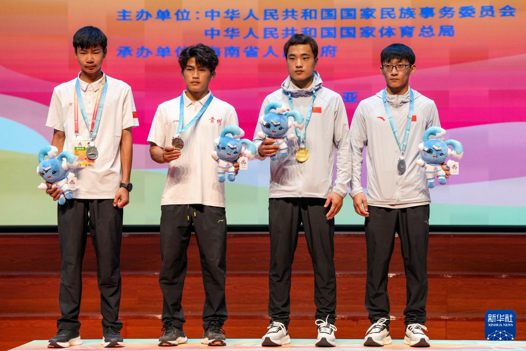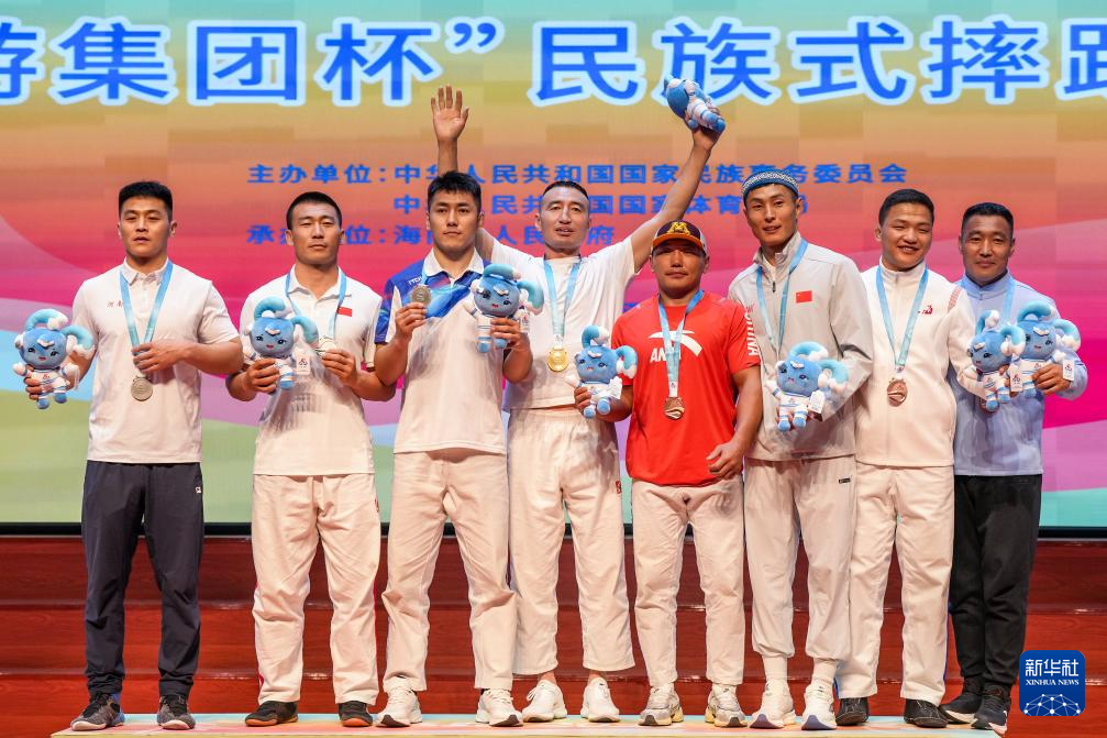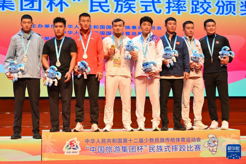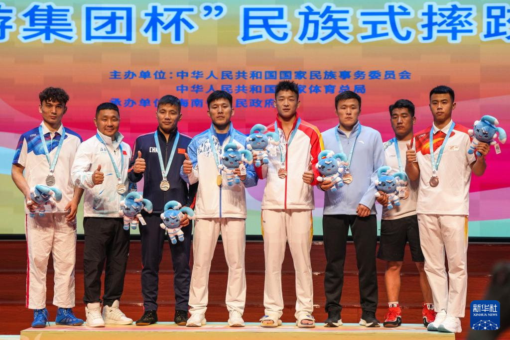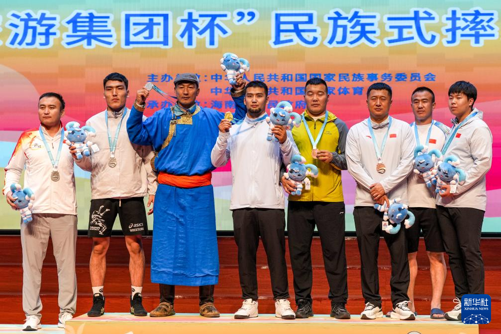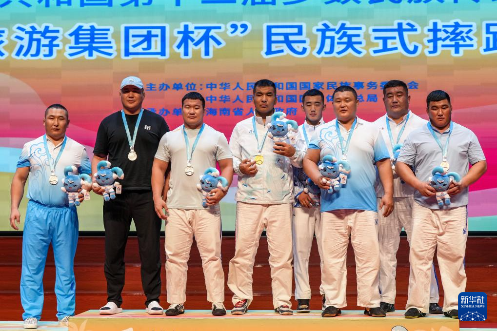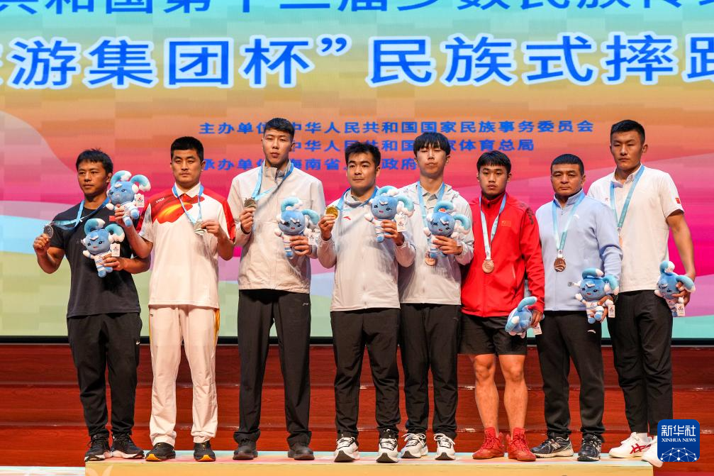 當日,第十二屆全國少數(shù)民族傳統(tǒng)體育運動會民族式摔跤項目頒獎儀式在海南省三亞市舉行。