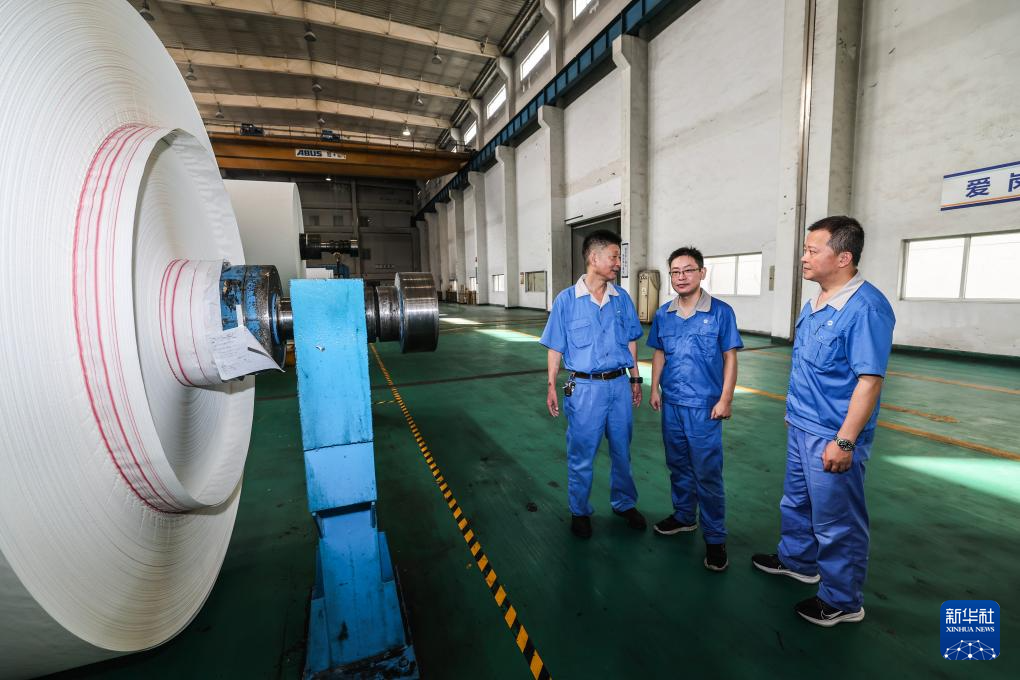 9月12日,在民豐特種紙股份有限公司七分廠生產(chǎn)現(xiàn)場,嘉興市南湖區(qū)的人大代表曹繼華(左一)、王洪祥(左二)在了解一線職工的想法,協(xié)調(diào)解決基層單位、職工群眾反映的實際問題和合理訴求。新華社記者 徐昱 攝