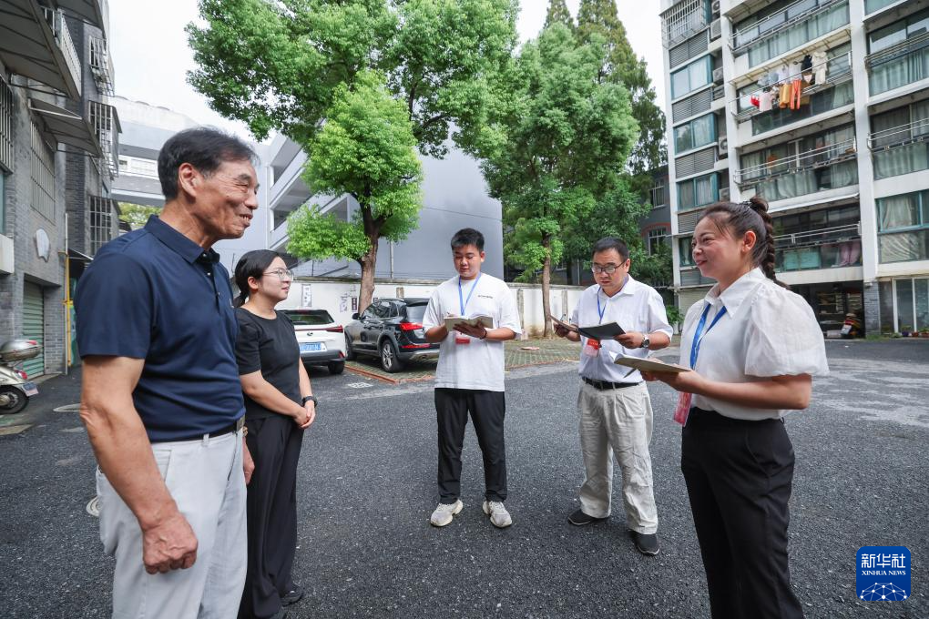 9月11日,湖州吳興區(qū)人大代表(右一、右二)和飛英街道議政員(右三)及塔下街社區(qū)工作人員在社區(qū)停車場(chǎng)聽取居民關(guān)于“停車難”問(wèn)題的反饋,并征集相關(guān)意見建議。新華社記者 徐昱 攝