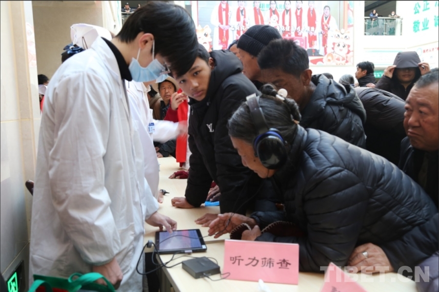 剛剛戴上助聽器的洛松老人笑著說:“以前別人說話,我得湊得很近才能聽見。今天專家?guī)臀遗淞酥犉?,一下子能聽清楚了,謝謝他們!”