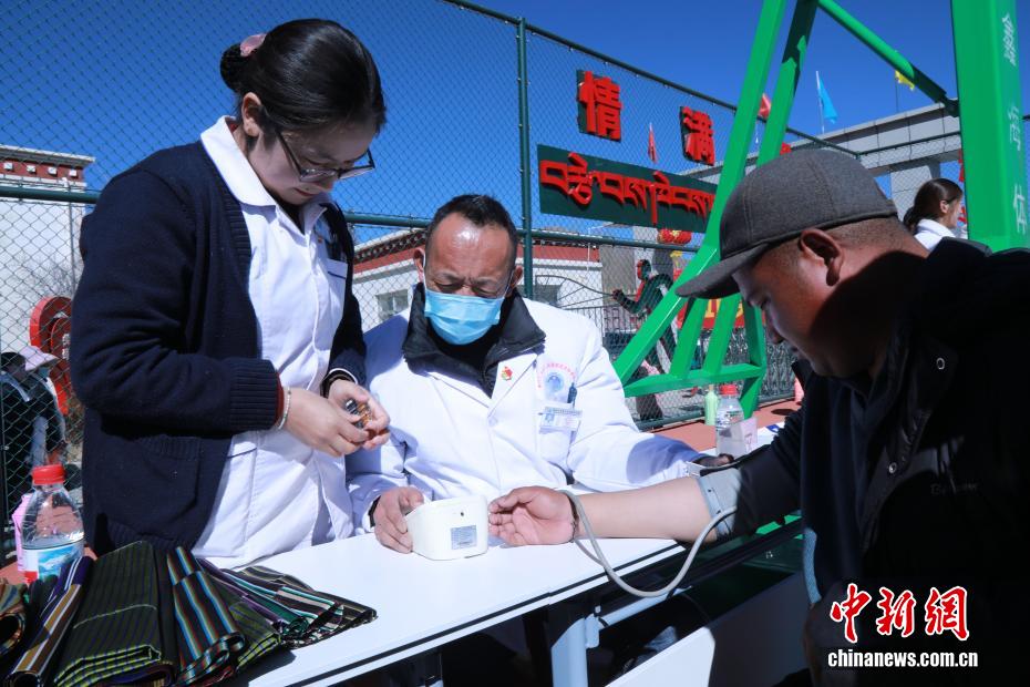2月6日,春節(jié)、藏歷新年來臨之際,西藏拉薩市墨竹工卡縣殘疾人聯(lián)合會(huì)在墨竹工卡縣殘疾人綜合服務(wù)中心開展“殘疾人文化進(jìn)社區(qū)”活動(dòng),豐富殘疾人精神文化生活,傳遞社會(huì)溫情?;顒?dòng)現(xiàn)場(chǎng)張燈結(jié)彩,歌舞節(jié)目輪番上演,充分展現(xiàn)殘疾人積極向上的精神風(fēng)貌。工作人員為殘疾人送上慰問品與雙節(jié)祝福;義診區(qū)提供健康檢測(cè)、康復(fù)指導(dǎo)服務(wù);手工藝展區(qū)陳列著殘疾人制作的藏式手工藝品;趣味游戲區(qū)開展無障礙互動(dòng)活動(dòng),現(xiàn)場(chǎng)歡聲笑語不斷。圖為醫(yī)生為殘疾人測(cè)量血壓。