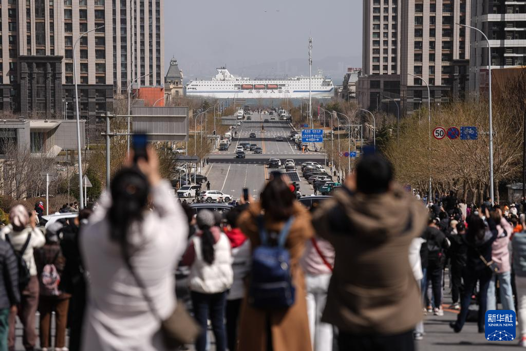 客輪通過大連港東五街附近的海域(2024年3月29日攝)。
