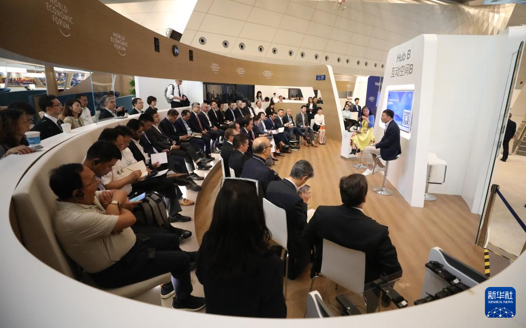 一名記者在第十五屆夏季達(dá)沃斯論壇開幕式上拍攝(2024年6月25日攝)。