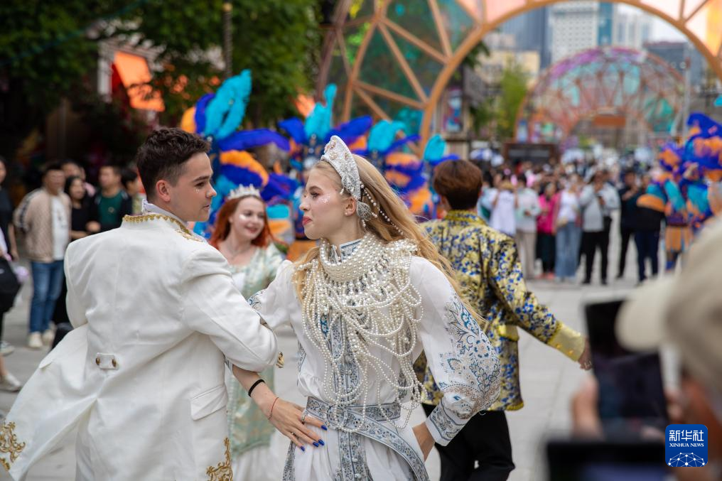 游客在大連俄羅斯風(fēng)情街欣賞表演(2024年5月25日攝)。