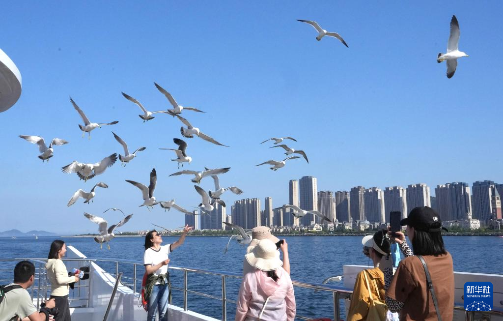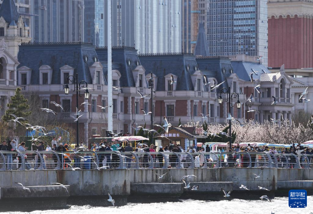 在遼寧省大連市東港商務(wù)區(qū),游客在海邊休閑觀光(2024年4月16日攝)。