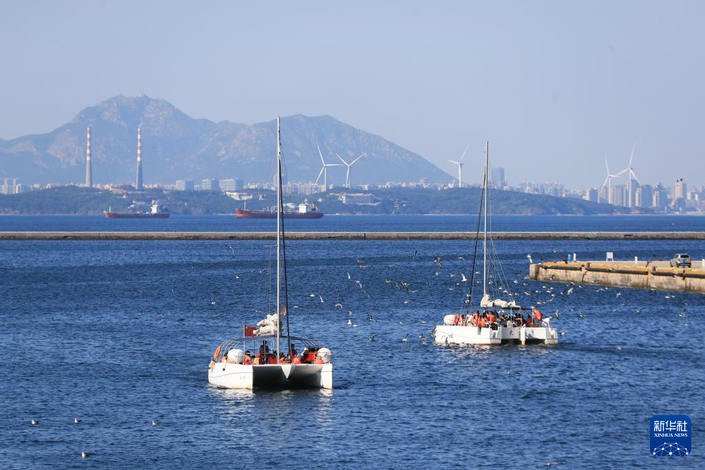 游客在遼寧大連東港商務(wù)區(qū)附近海邊乘船出海游玩(2024年6月16日攝)。