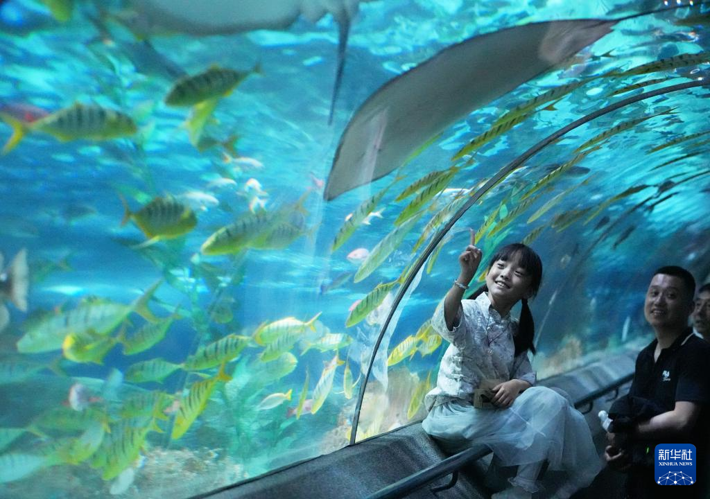 游客在大連圣亞海洋世界觀賞海洋魚類(2024年5月22日攝)。