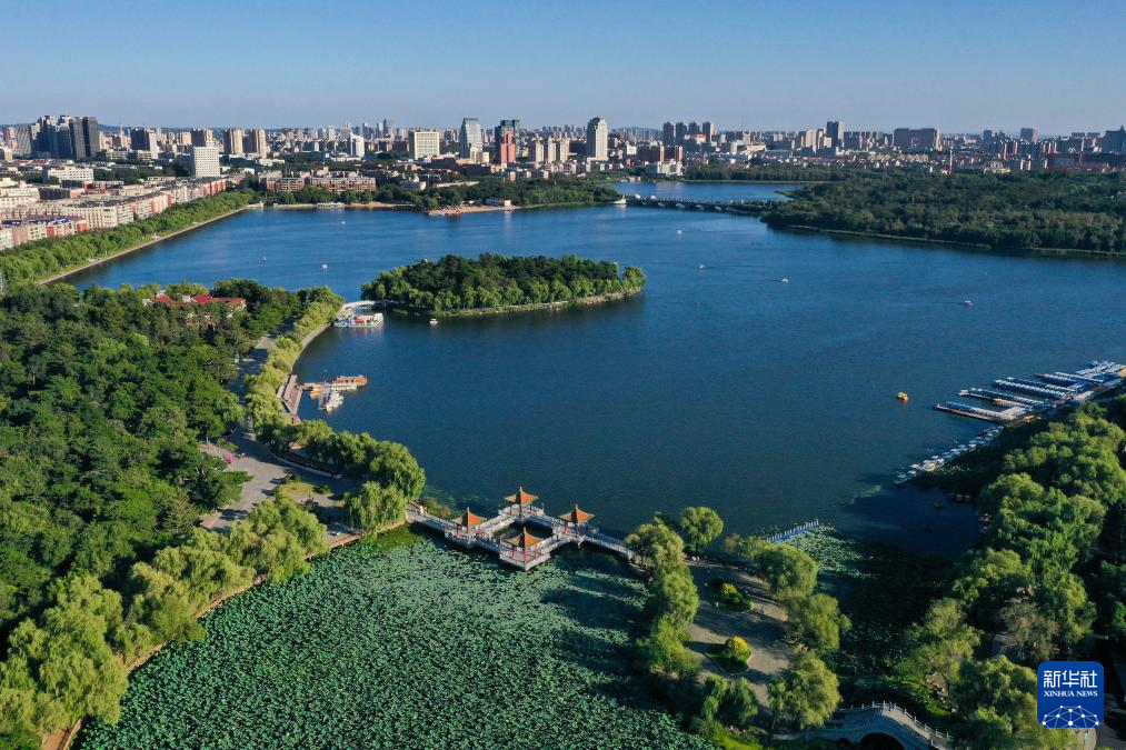 9月3日拍攝的長春市南湖公園(無人機照片)。