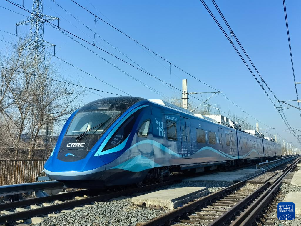 我國首列氫能源市域列車在位于長春的中車長客試驗線進行運行試驗(3月21日攝)。