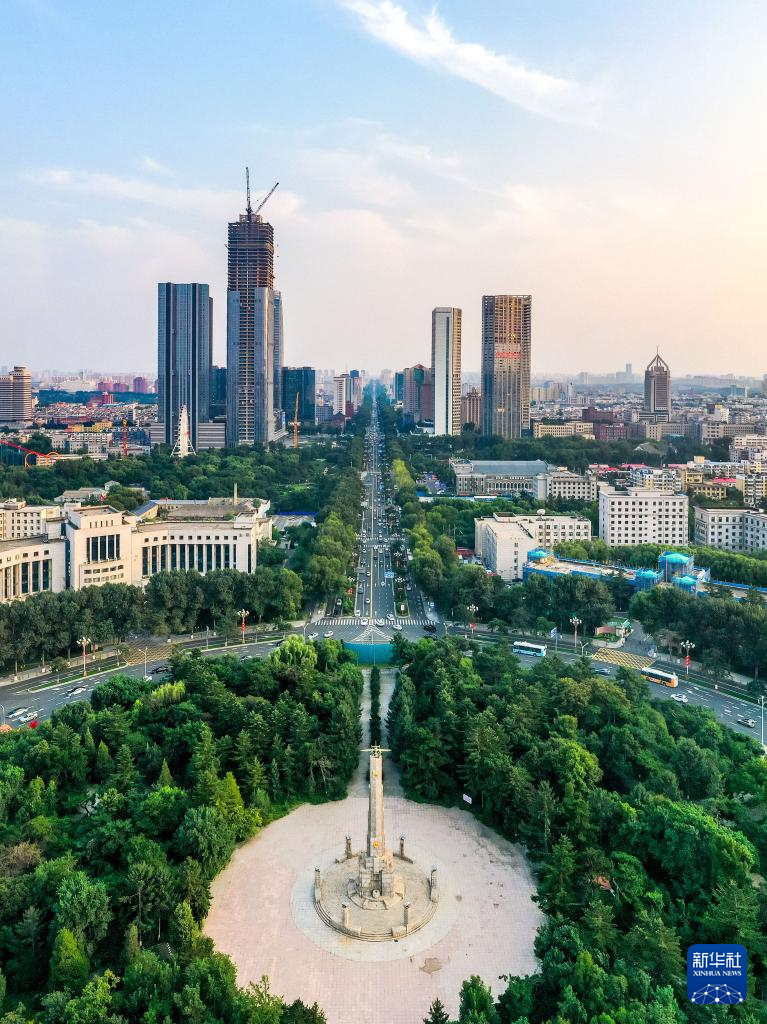 8月24日拍攝的長春市中軸線上的人民廣場及人民大街(無人機照片)。